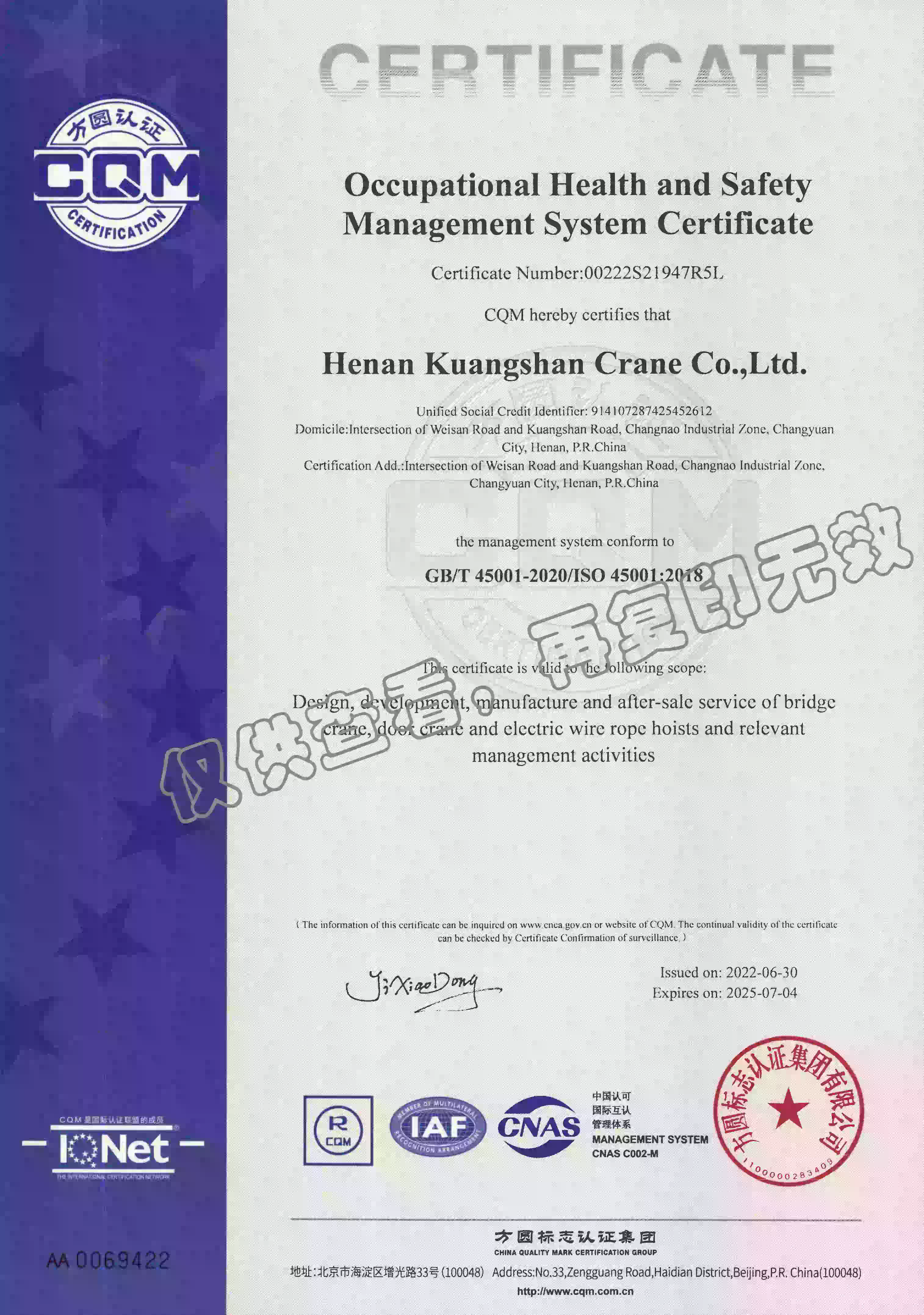 The KSQ series double girder overhead crane is engineered to deliver precision and reliability for demanding industrial applications. Its design, manufacturing, and quality inspection adhere strictly to the latest national standards (GB) while also incorporating key international norms such as FEM, DIN, and IEC. Certified under ISO and CE, this crane ensures stable and accurate lifting and travel movements.